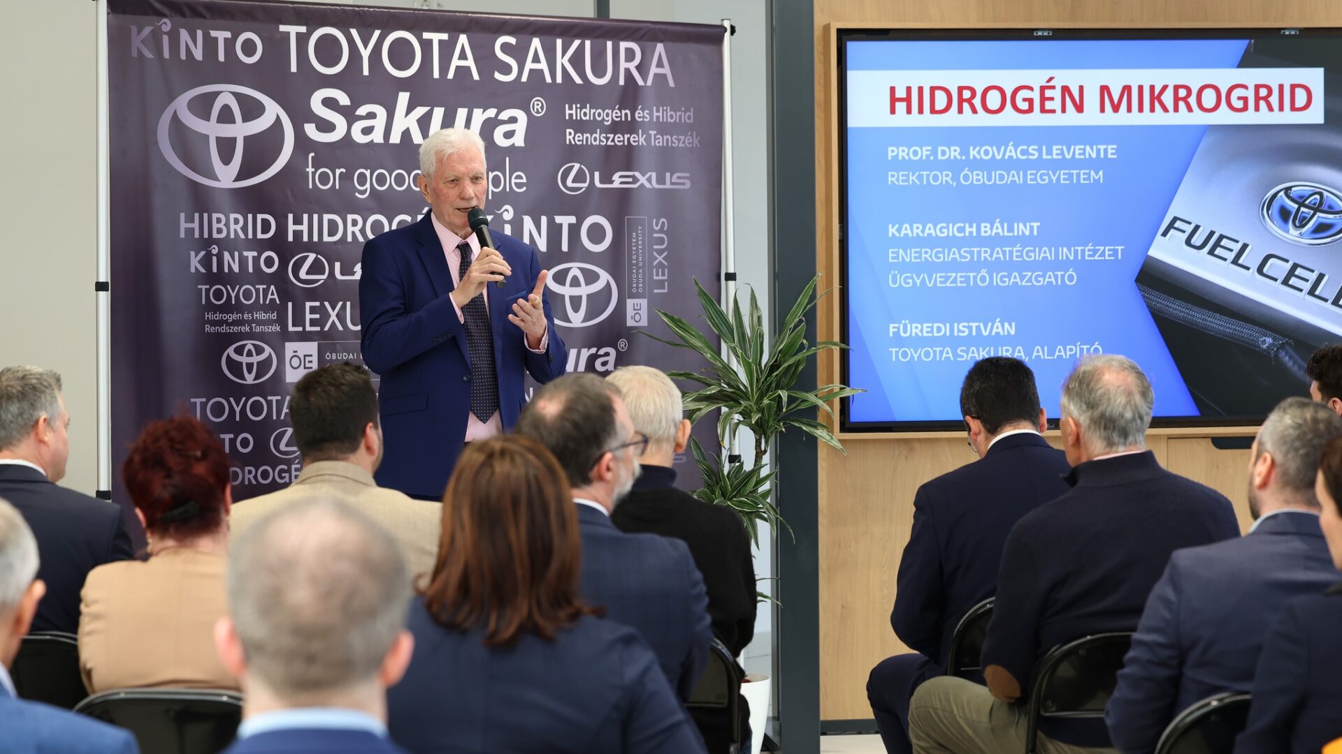 Az Óbudai Egyetem és a Toyota Sakura közösen rendezte meg az „Energiaforradalom - Hidrogéntechnológiai premier” című szakmai bemutatót, amelyen egy működő hidrogénalapú energetikai megoldást mutattak be. Az esemény célja olyan innovatív technológiák bemutatása volt, amelyek a hagyományos fosszilis energiarendszereket környezetbarát alternatívákkal helyettesíthetik.